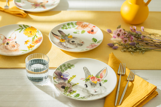 8.5" Flower Bunnies Salad/Dessert Plate Set of 4