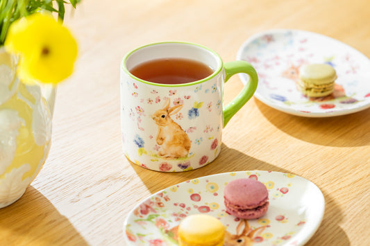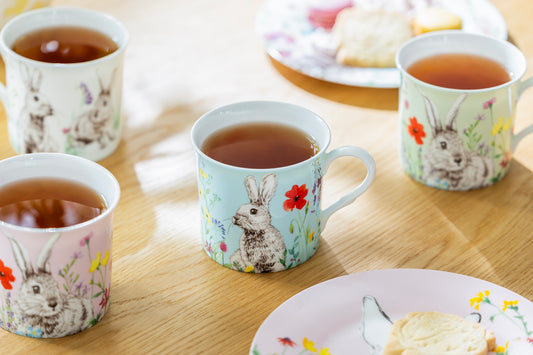 Flower Bunny Bone China 4-Color Assorted Mugs