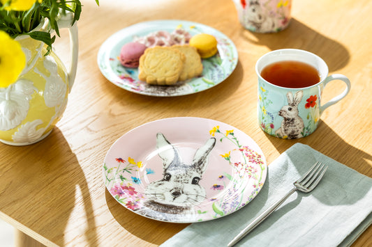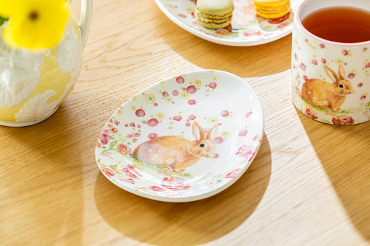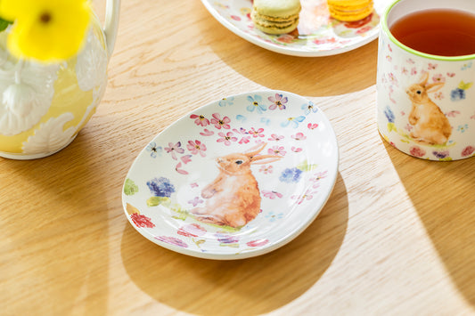 7.5" Flower Bunny Bone China Dessert Plate