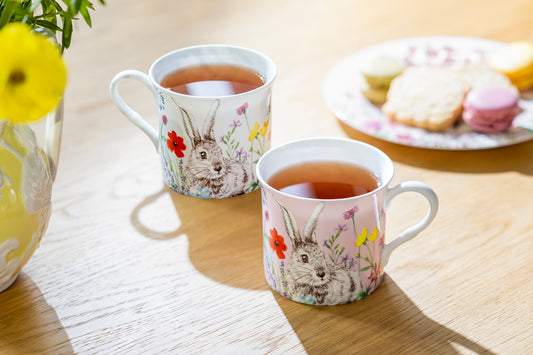 Pink & White Flower Bunny Bone China Assorted Mugs