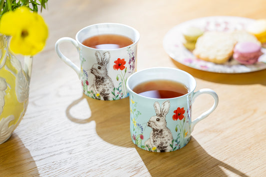 Blue & White Flower Bunny Bone China Assorted Mugs