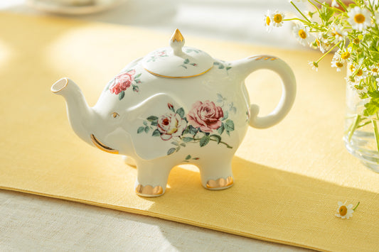Floral Elephant Fine Porcelain Teapot