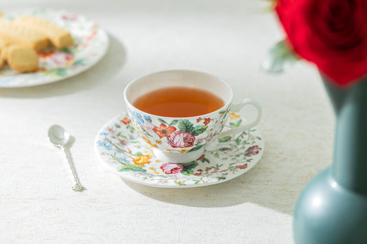 Lismore Rose Garden Bone China Tea Cup and Saucer