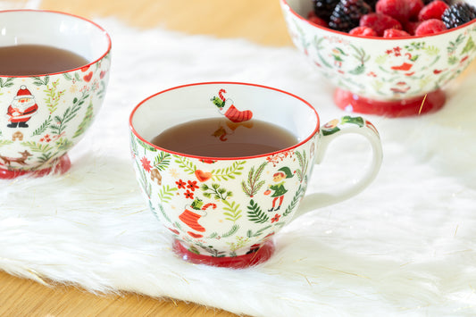 Festive Holiday Elf and Santa Fine Porcelain Latte Mug