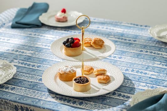 Gold Dots Fine Porcelain 2-Tier Server