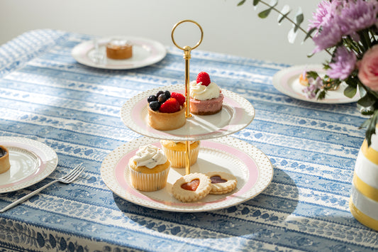 Pink Stripe with Gold Dots Fine Porcelain 2-Tier Server