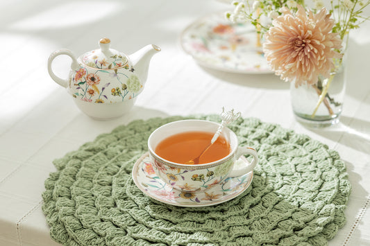 Spring Flowers with Hummingbird Fine Porcelain Tea For One Set