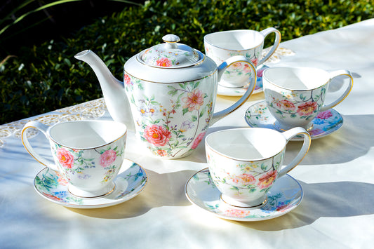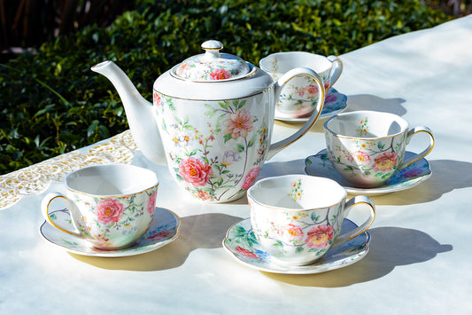 Pink Camellia Fine Porcelain Tea Set with 8oz Tea Cups