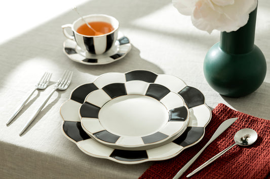 Black and White Scallop Fine Porcelain Dessert/Dinner Plate