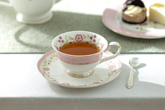Pink Corn Flowers with Pink Rim Fine Porcelain Tea Cup and Saucer