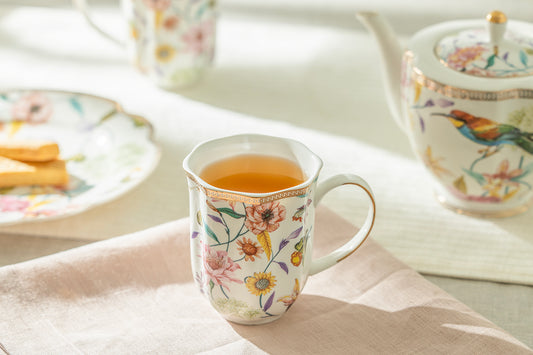 Spring Flowers with Hummingbird Fine Porcelain Latte Cups Tea Set