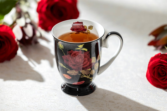 Gold Black Stem Rose Bone China Tea Cup and Saucer