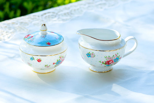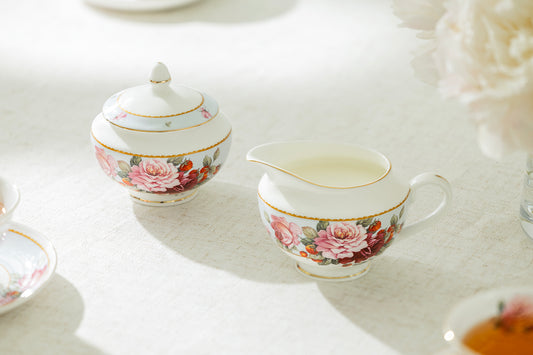 Peony and Strawberry Blue Bone China Sugar & Creamer Set