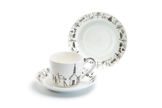 Winter Wonderland Ski Village Bone China Tea Cup and Saucer