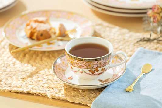 Rose Butterfly Bone China Tea Cup and Saucer