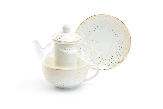 Gold Dots Glass and Fine Porcelain Tea For One Set