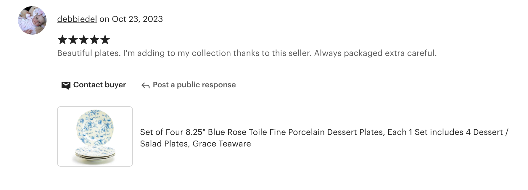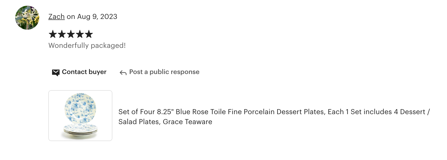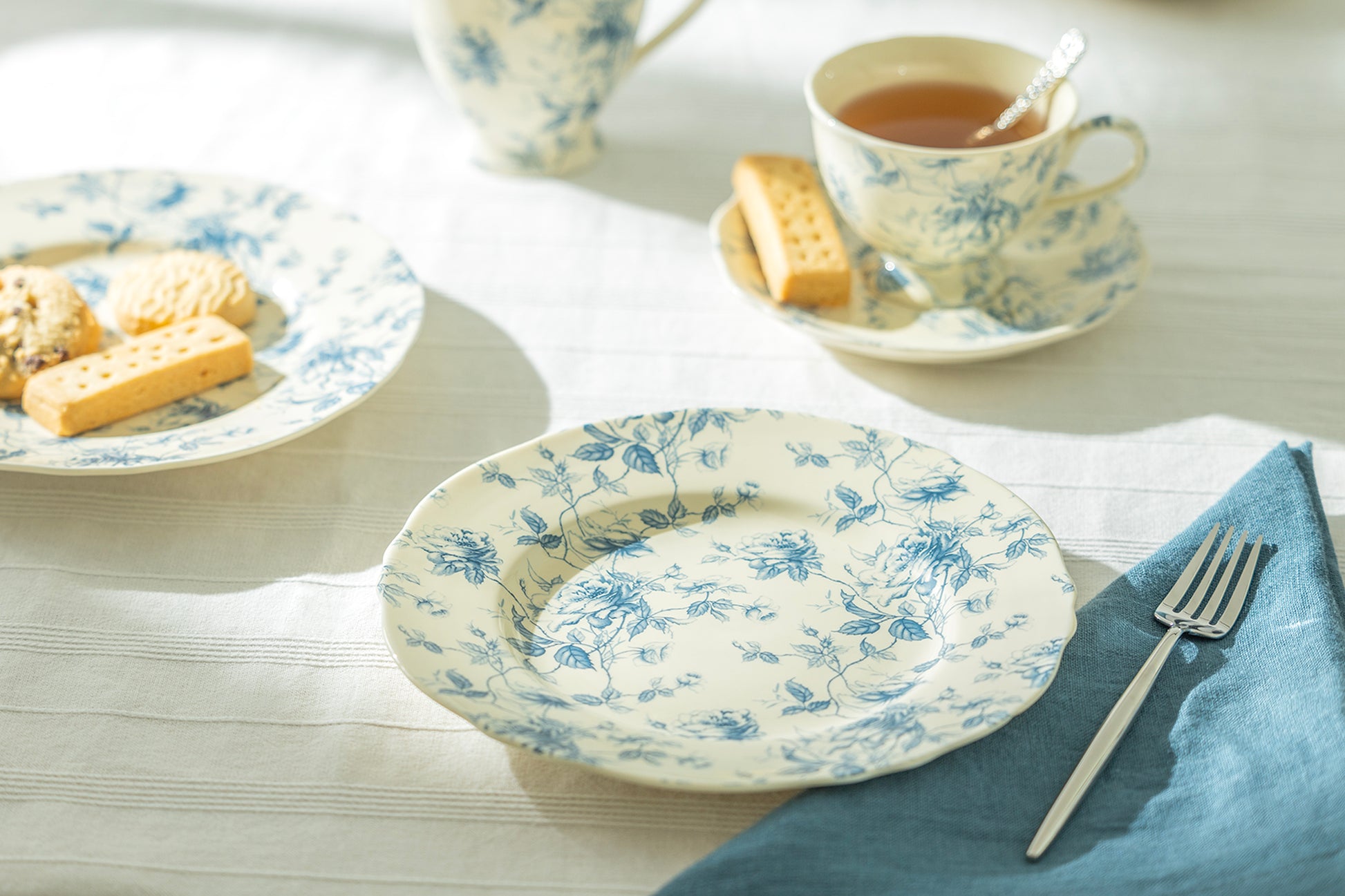 8.25" Blue Rose Toile Fine Porcelain Dessert Plate