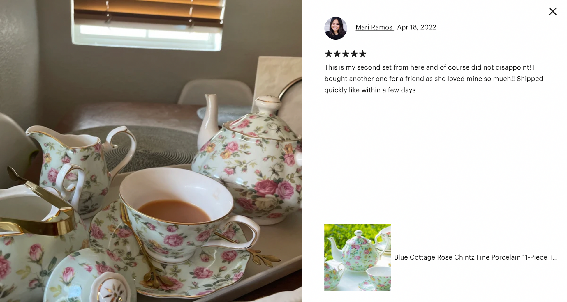 Blue Cottage Rose Chintz Fine Porcelain 11-Piece Tea Set