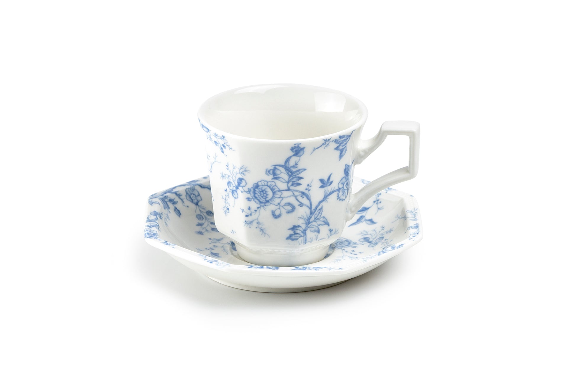 Blue Rose Octagonal Fine Porcelain Cup and Saucer