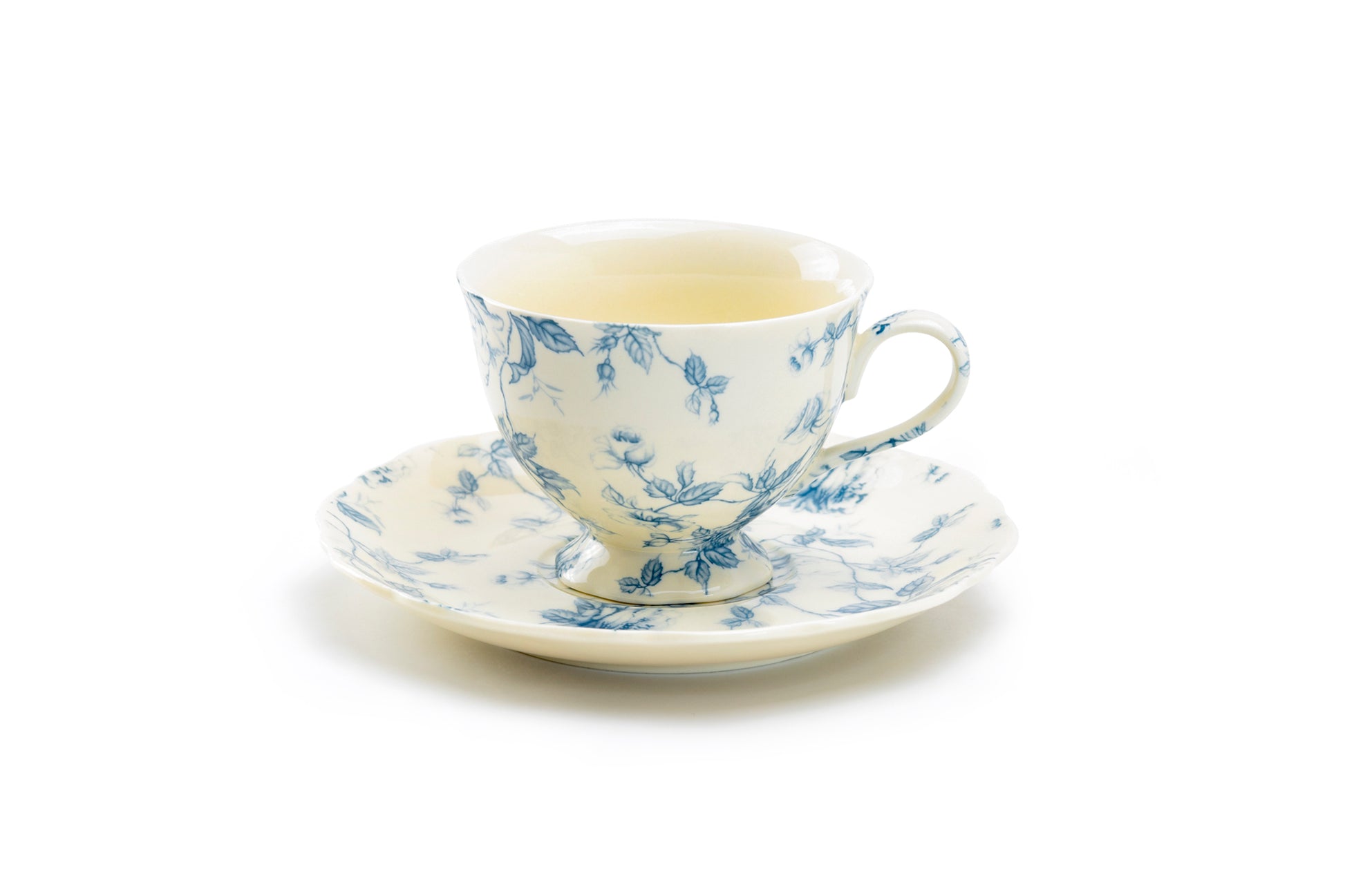 Blue Rose Toile Fine Porcelain Tea Cup and Saucer
