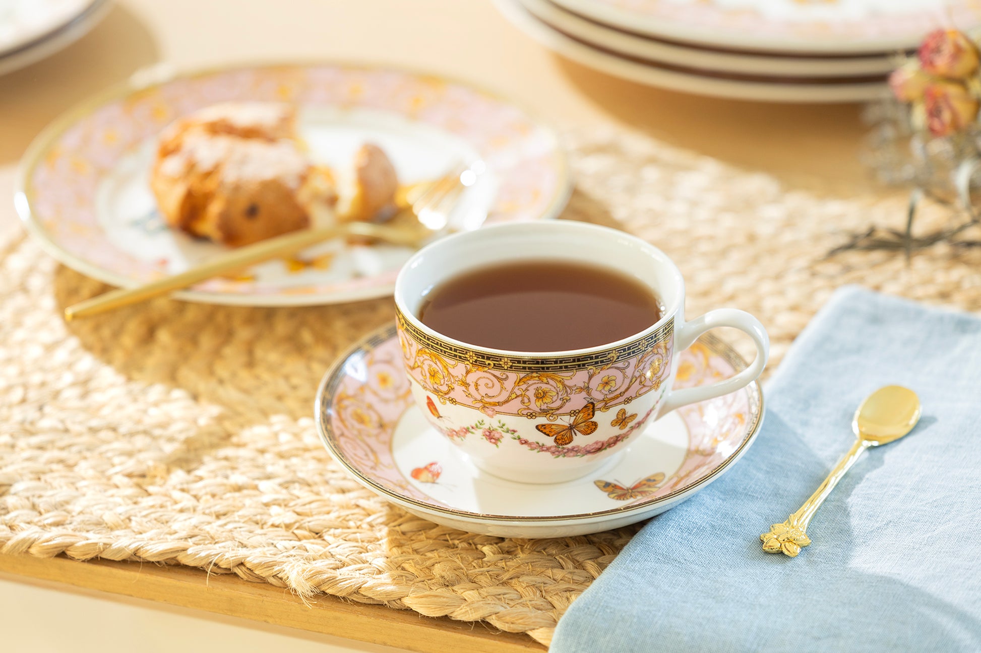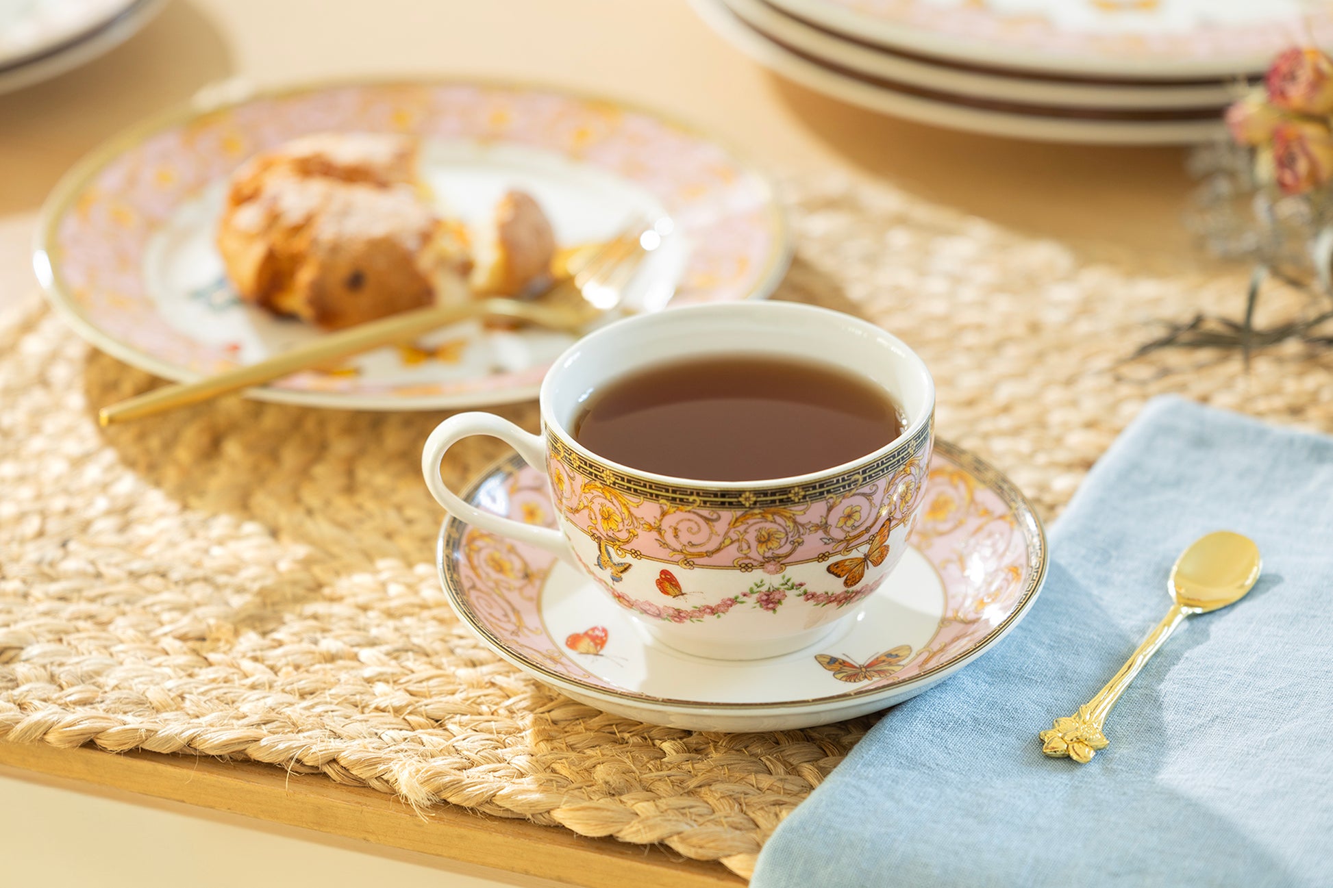 Butterflies with Pink Ornament Fine Porcelain Tea Cup and Saucer