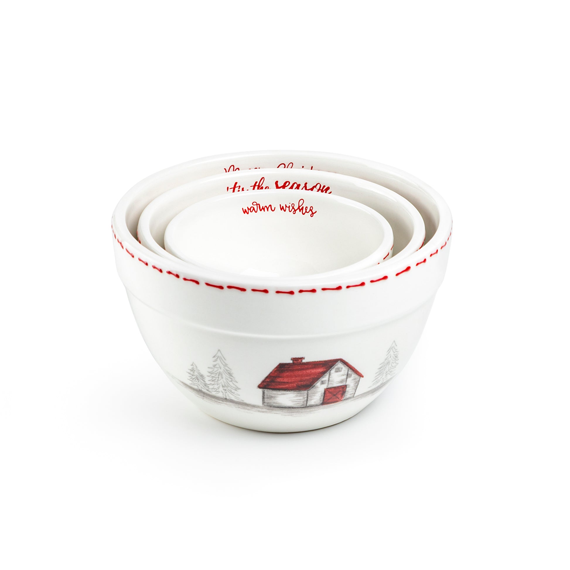 Christmas Farm House 3-Piece Bowl Set