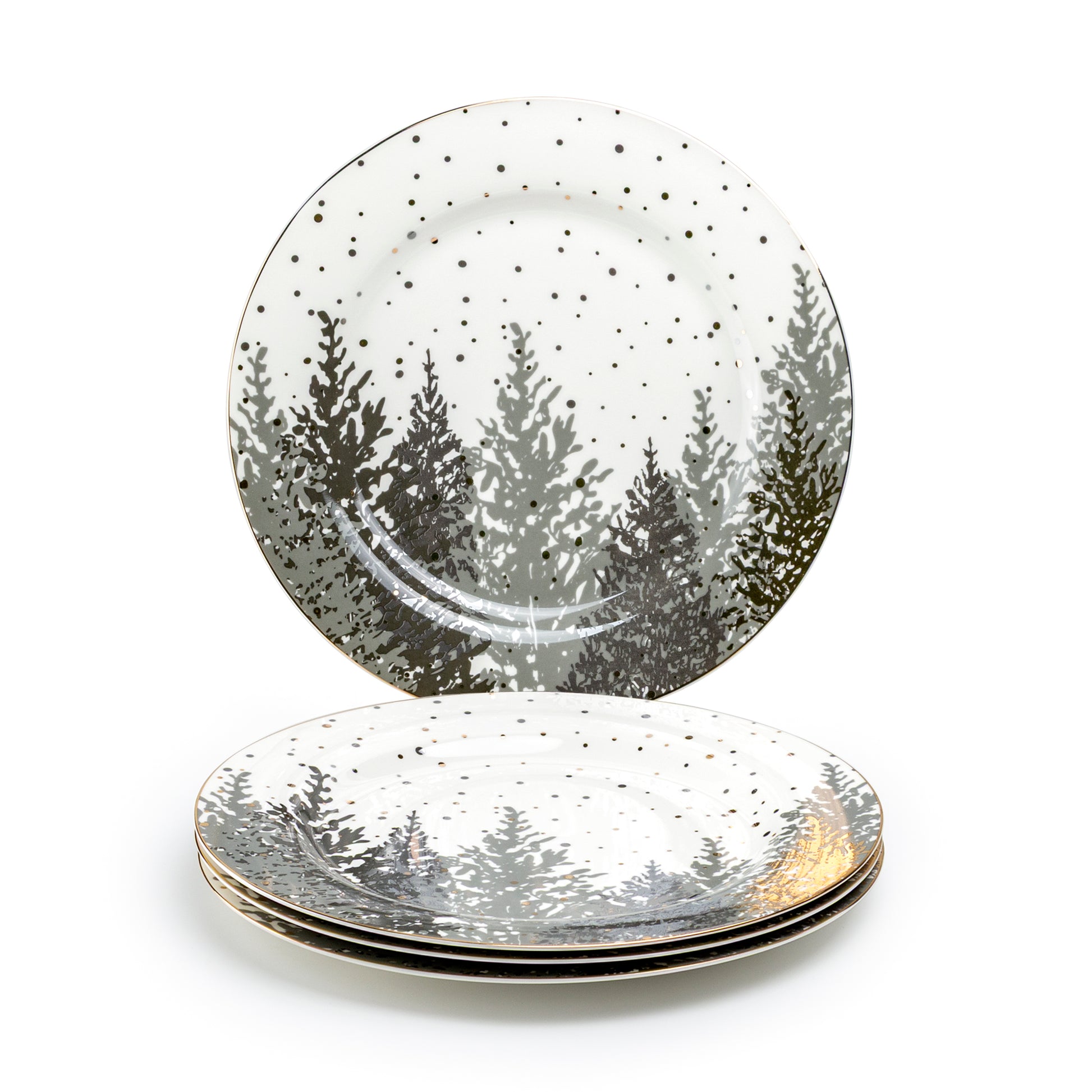 Grey and Gold Winter Forest Fine Porcelain Dessert/Dinner Plate