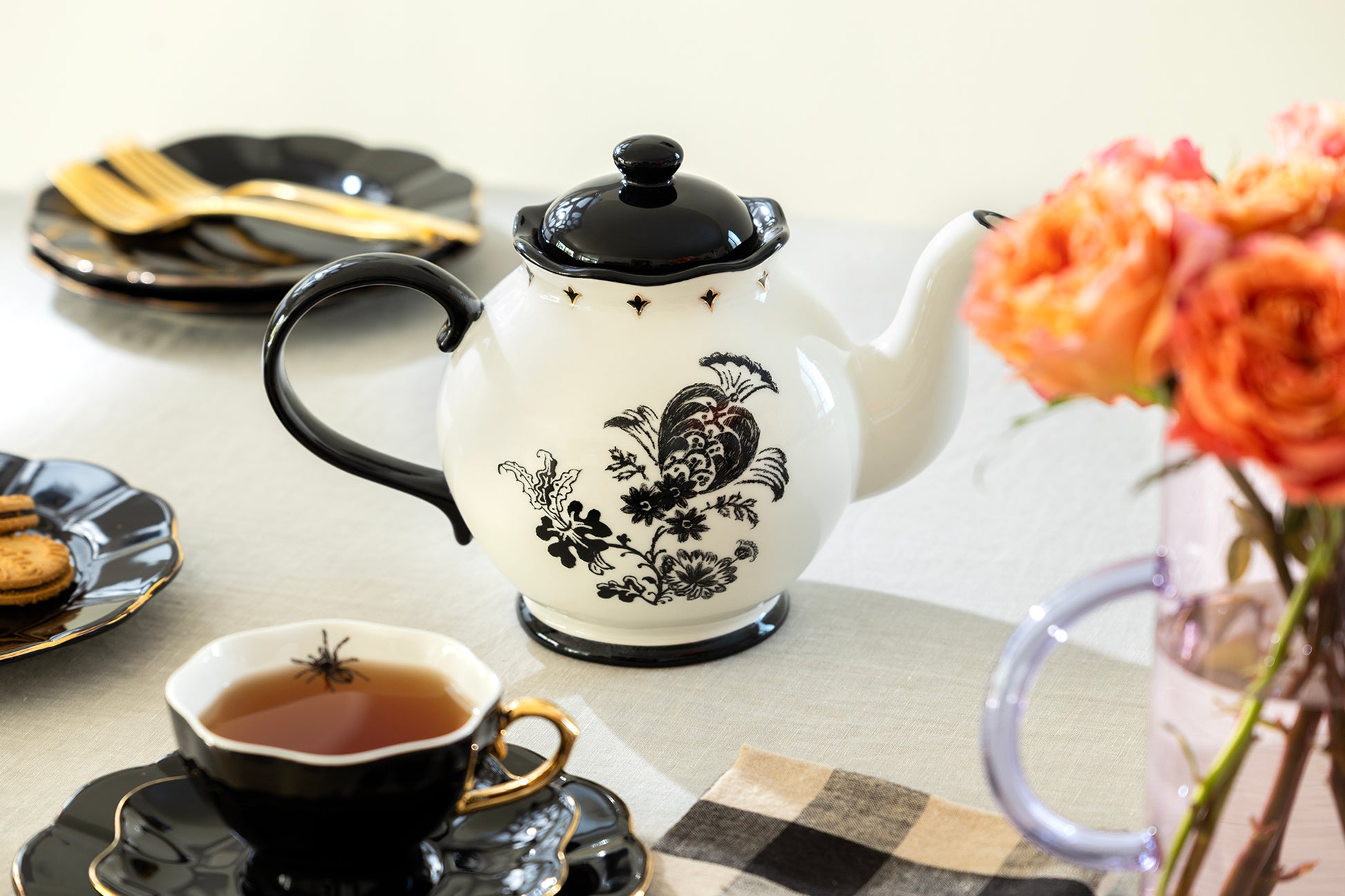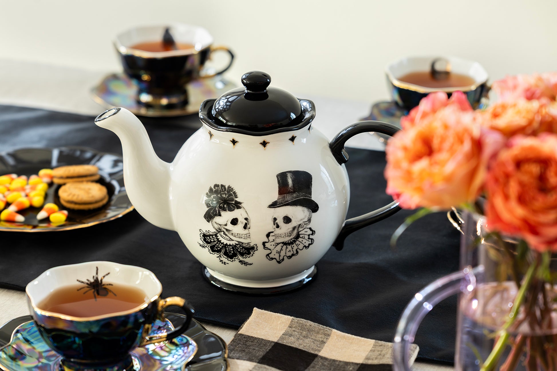 This teapot is perfect for brewing and serving tea, its unique design makes it a striking centerpiece for Halloween gatherings, gothic-themed tea parties, or adding a bold statement to everyday tea rituals. This product is handcrafted and painted, you may notice small air bubbles, pinholes, or uneven paint on its surface. This is normal and to be expected as a result of the intricate ceramic manufacturing process.