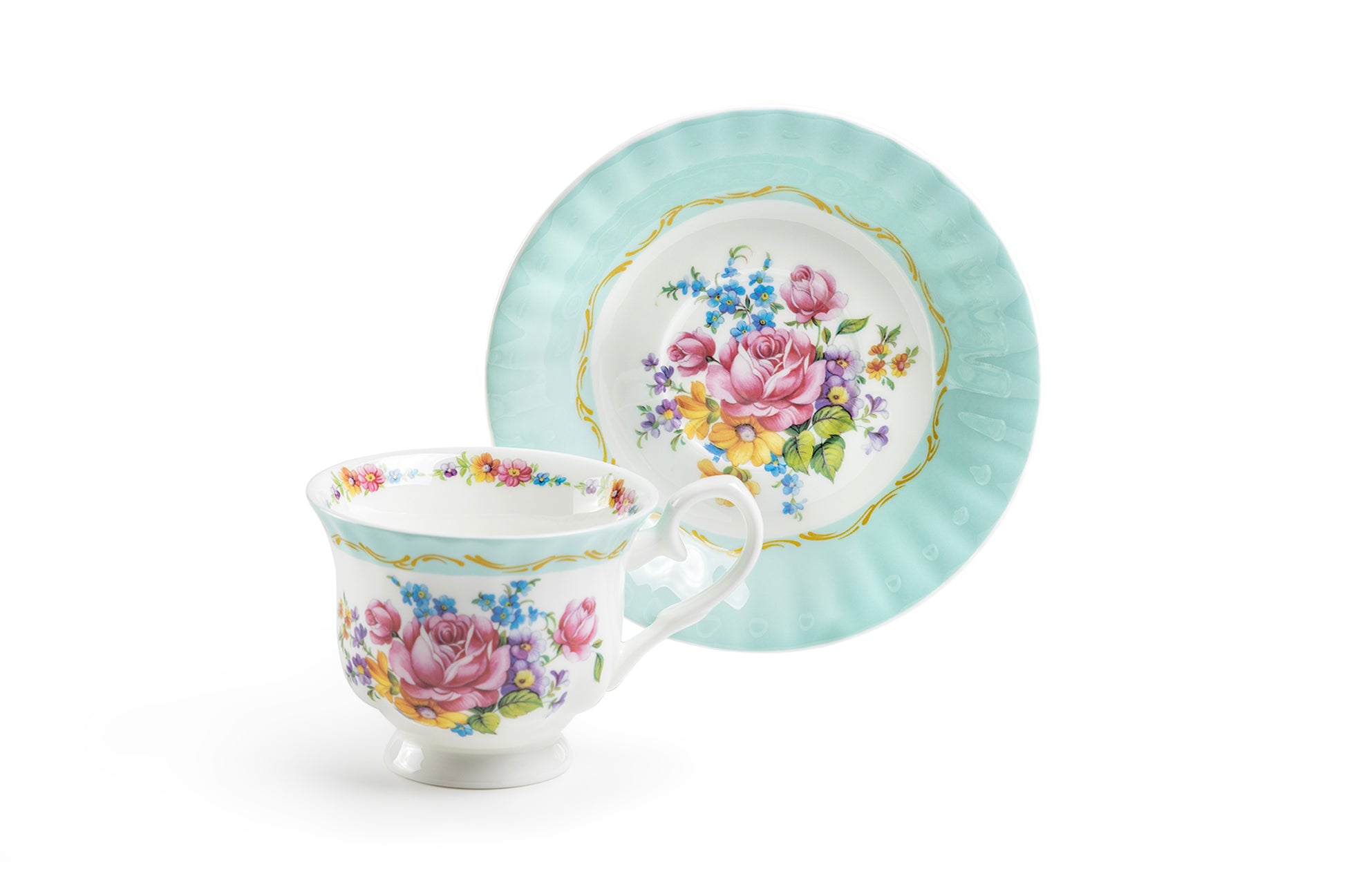 Marie Rose Mint Green Bone China Tea Cup and Saucer