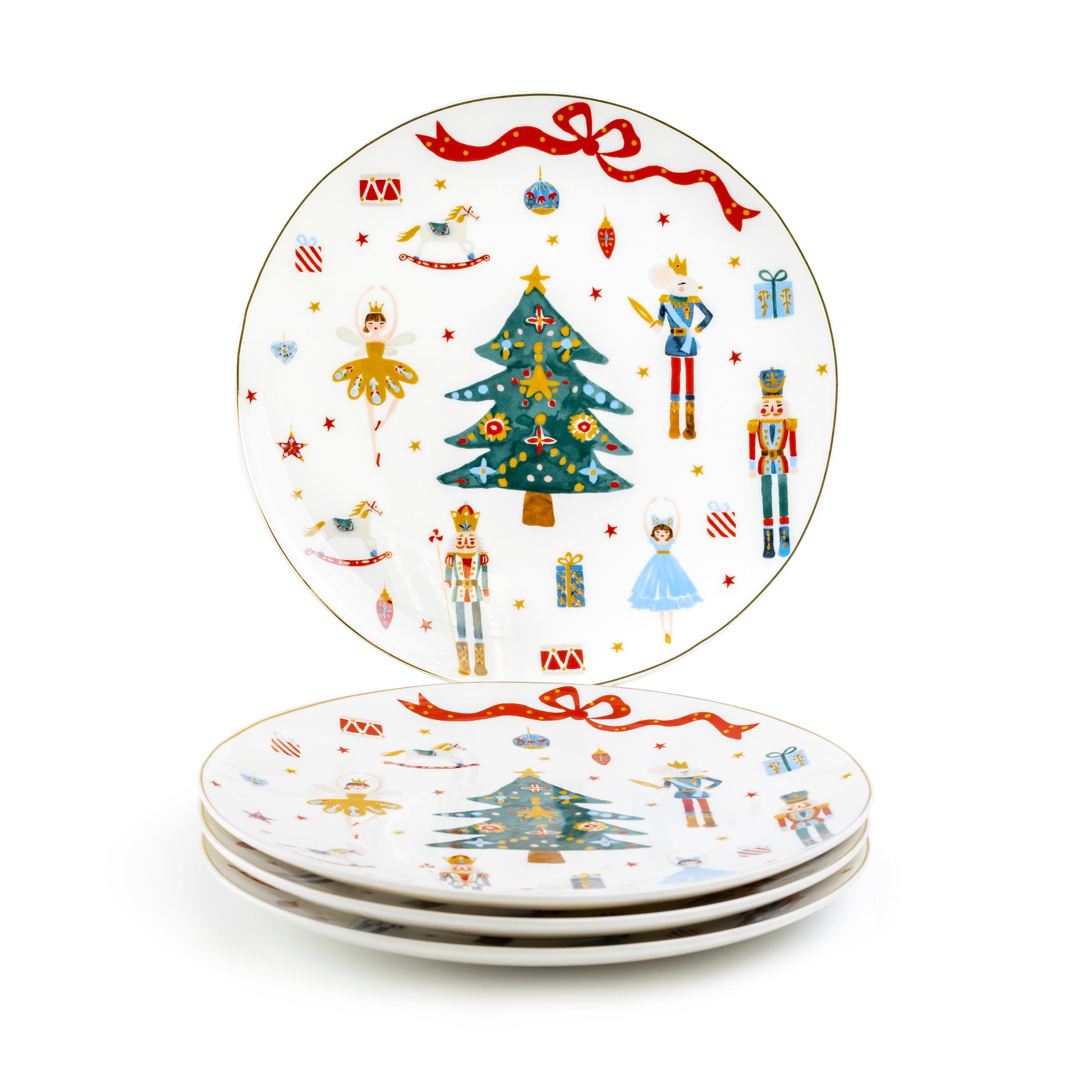 The Nutcracker Wonderland Dessert & Dinner Plates feature a delightful holiday-themed design, showcasing charming Nutcracker characters, delicate fairies, and beautifully decorated Christmas trees. With their whimsical details and gold-trimmed edges, these plates are not only visually stunning but also functional, perfect for serving desserts, appetizers, or main courses.