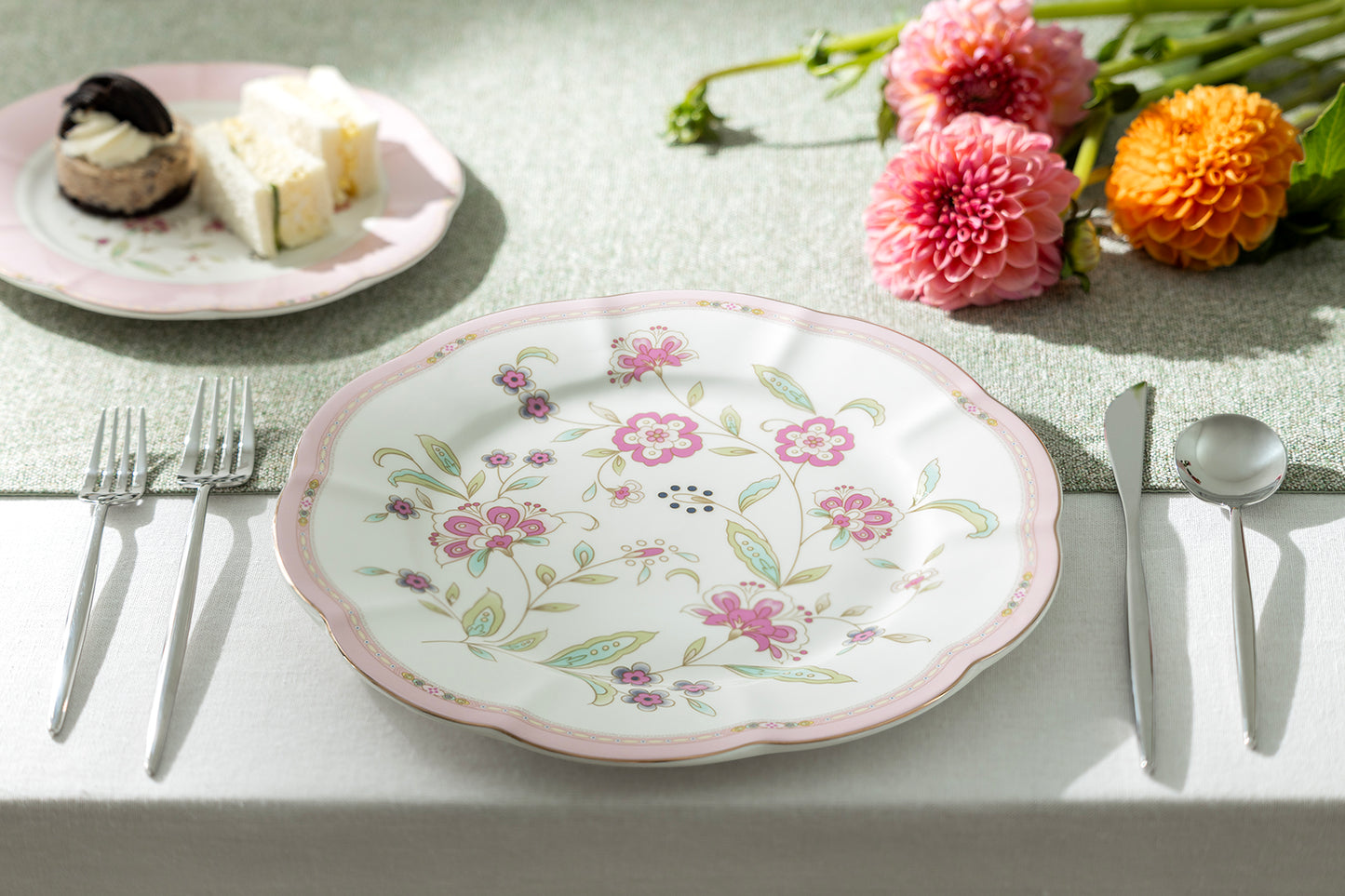 Pink Corn Flowers with Pink Rim Fine Porcelain Dessert/Dinner Plate