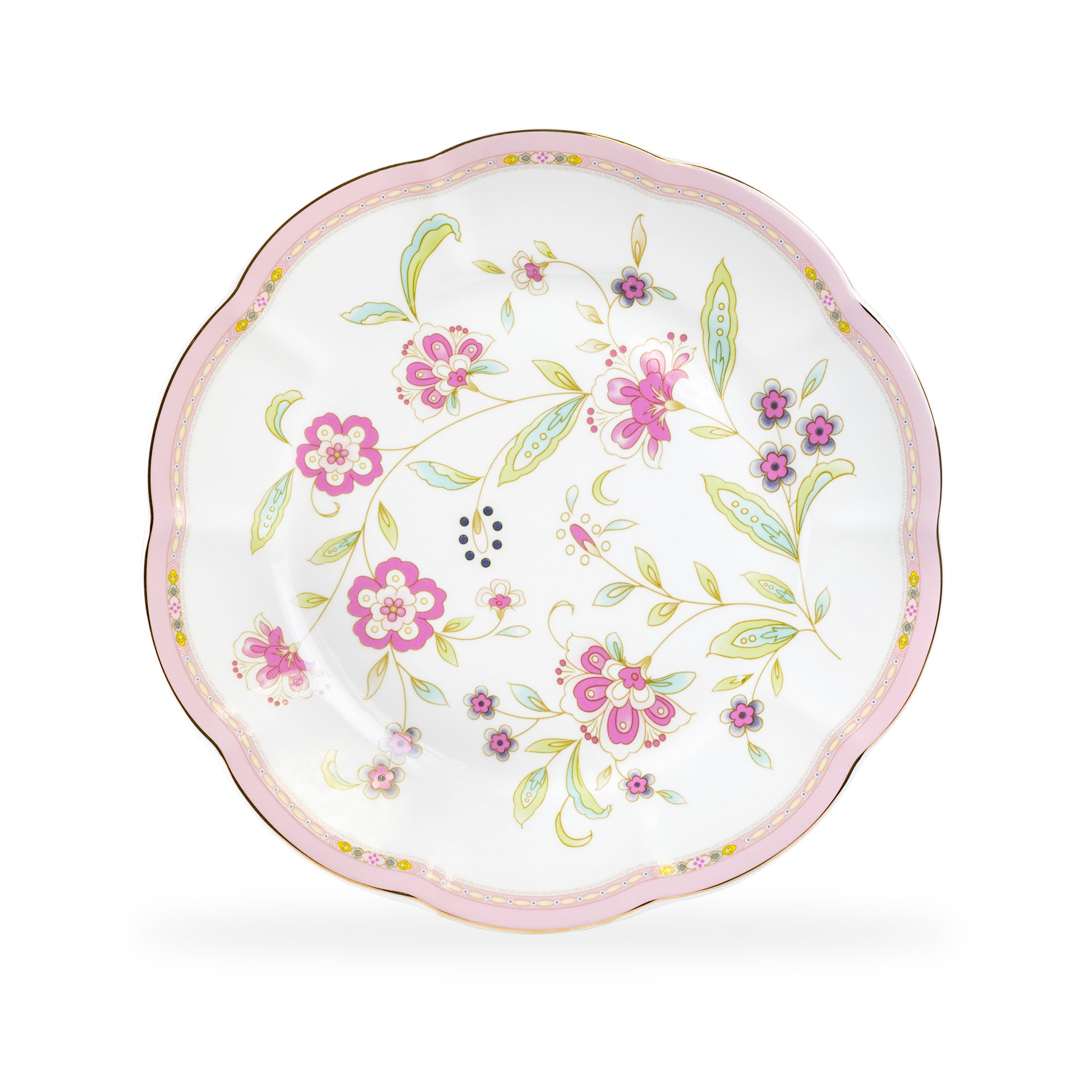 Pink Corn Flowers with Pink Rim Fine Porcelain Dessert/Dinner Plate