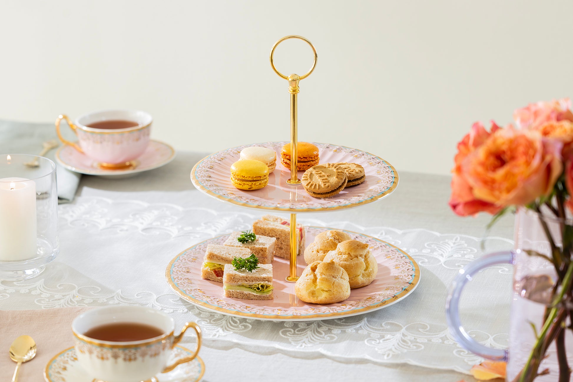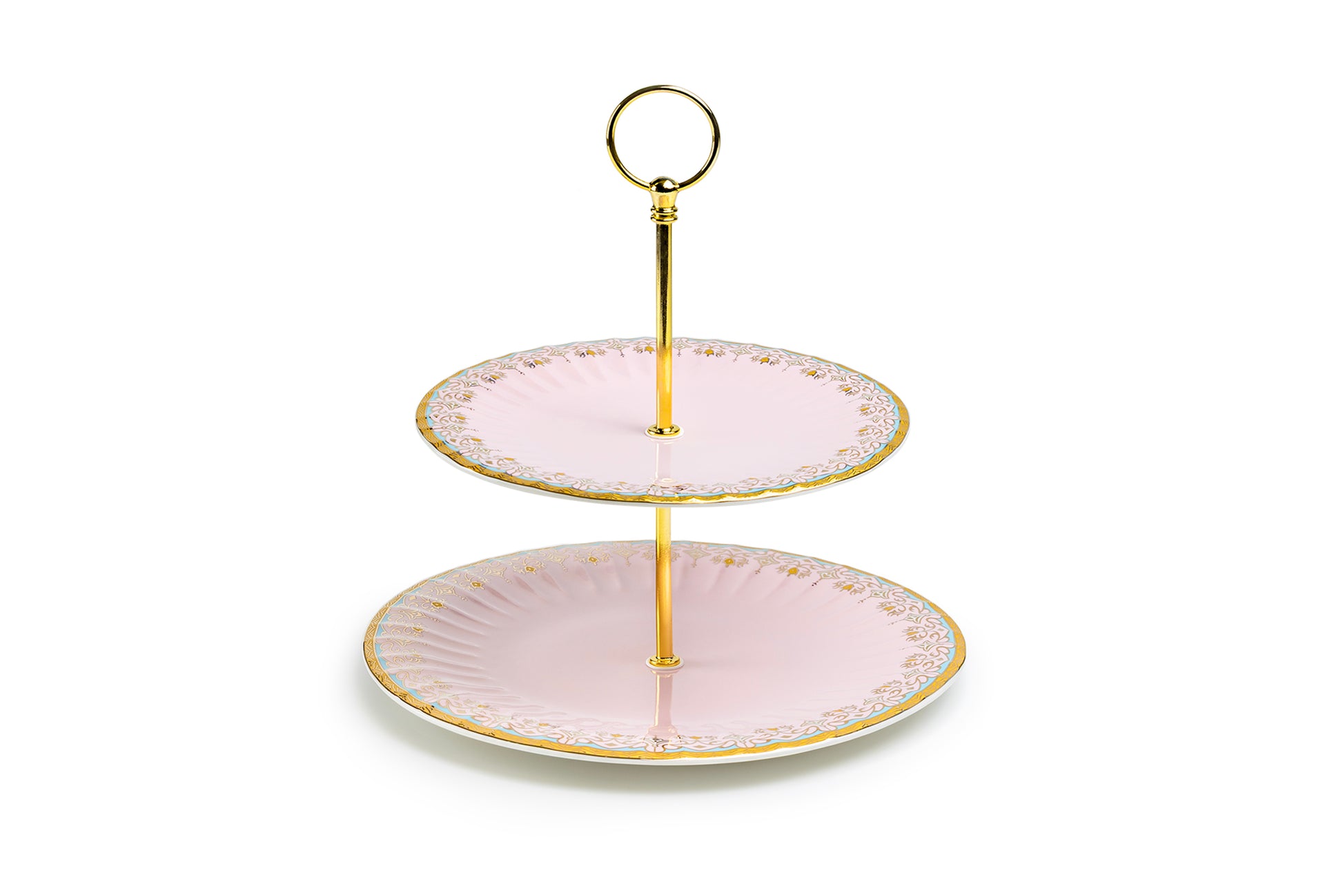 Pink Floral Toile Fine Porcelain 2-Tier Server