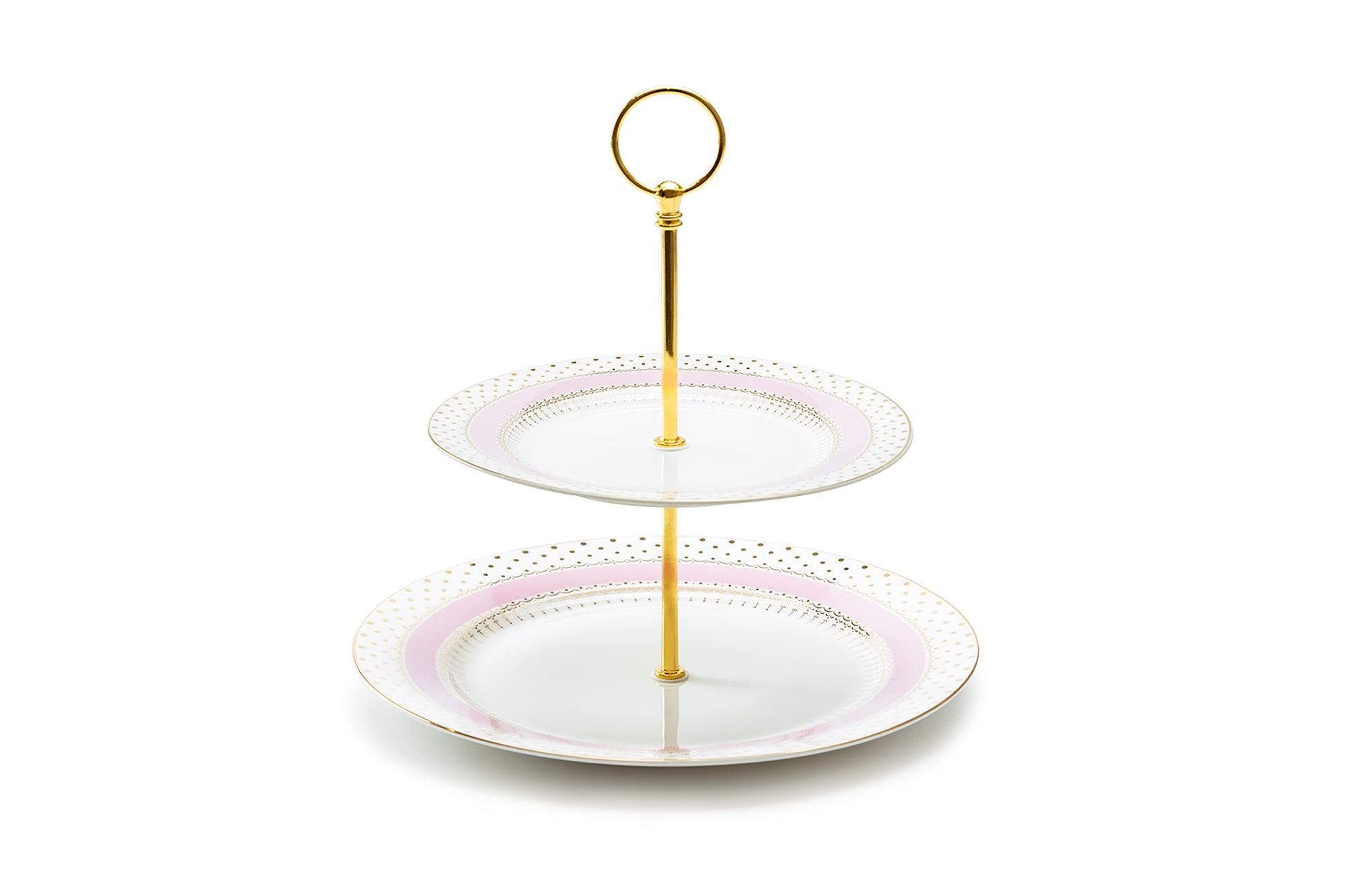 Pink Stripe with Gold Dots Fine Porcelain 2-Tier Server
