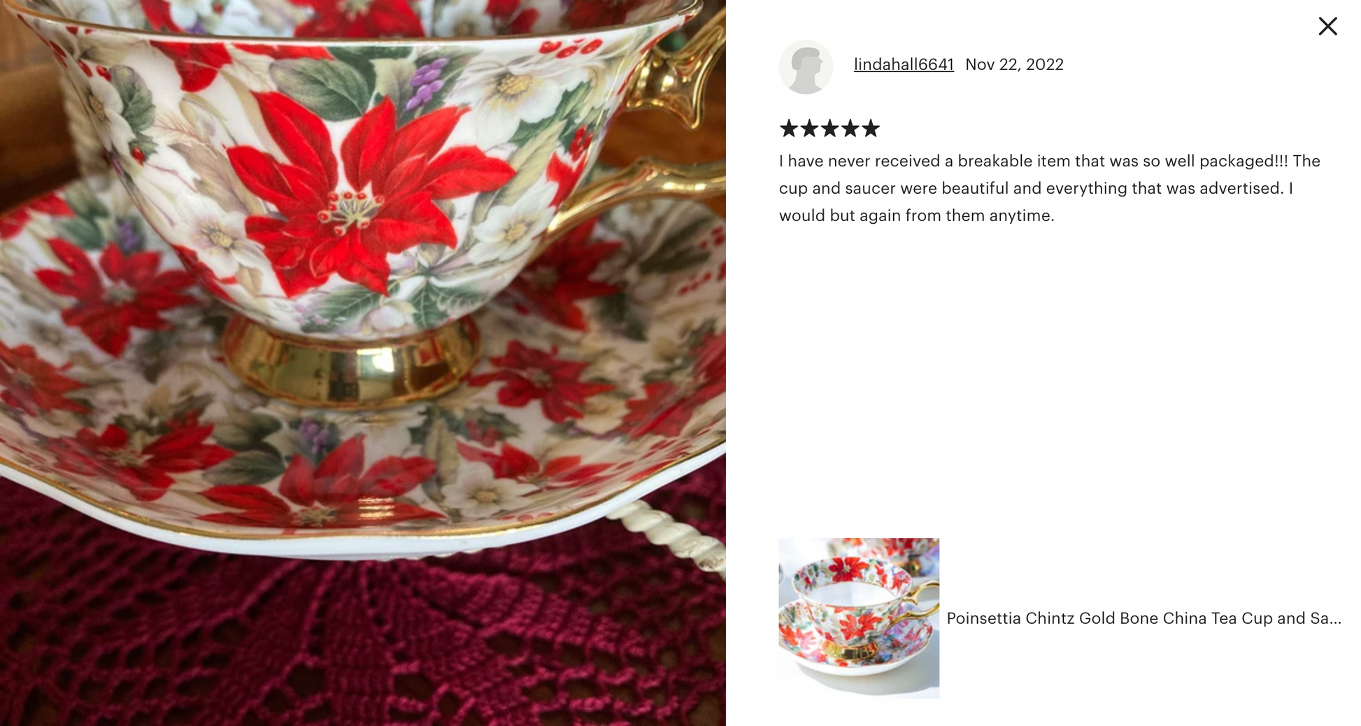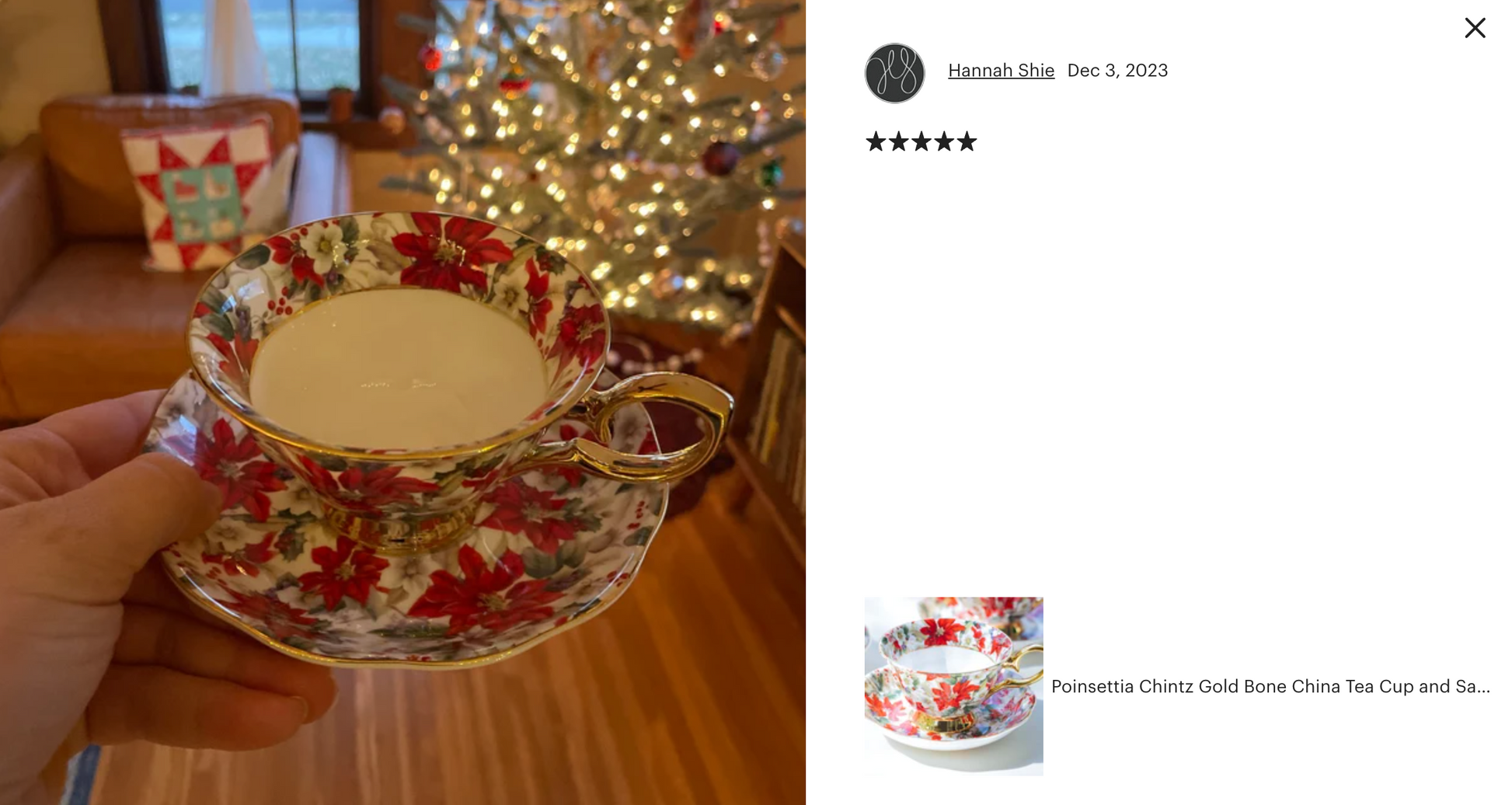 Poinsettia Chintz Gold Bone China Tea Cup and Saucer