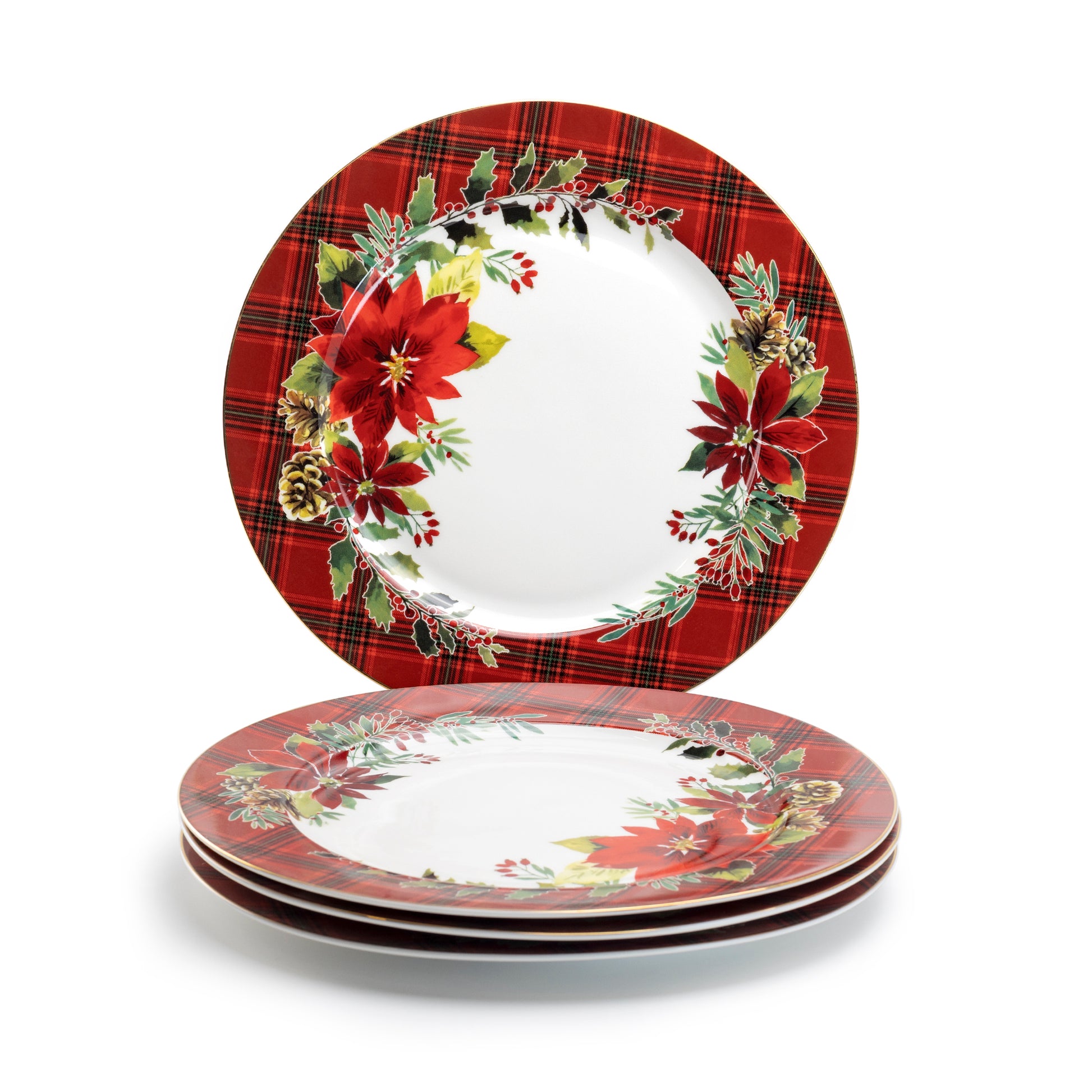 Poinsettia Pine Cone Fine Porcelain Dessert/Dinner Plate