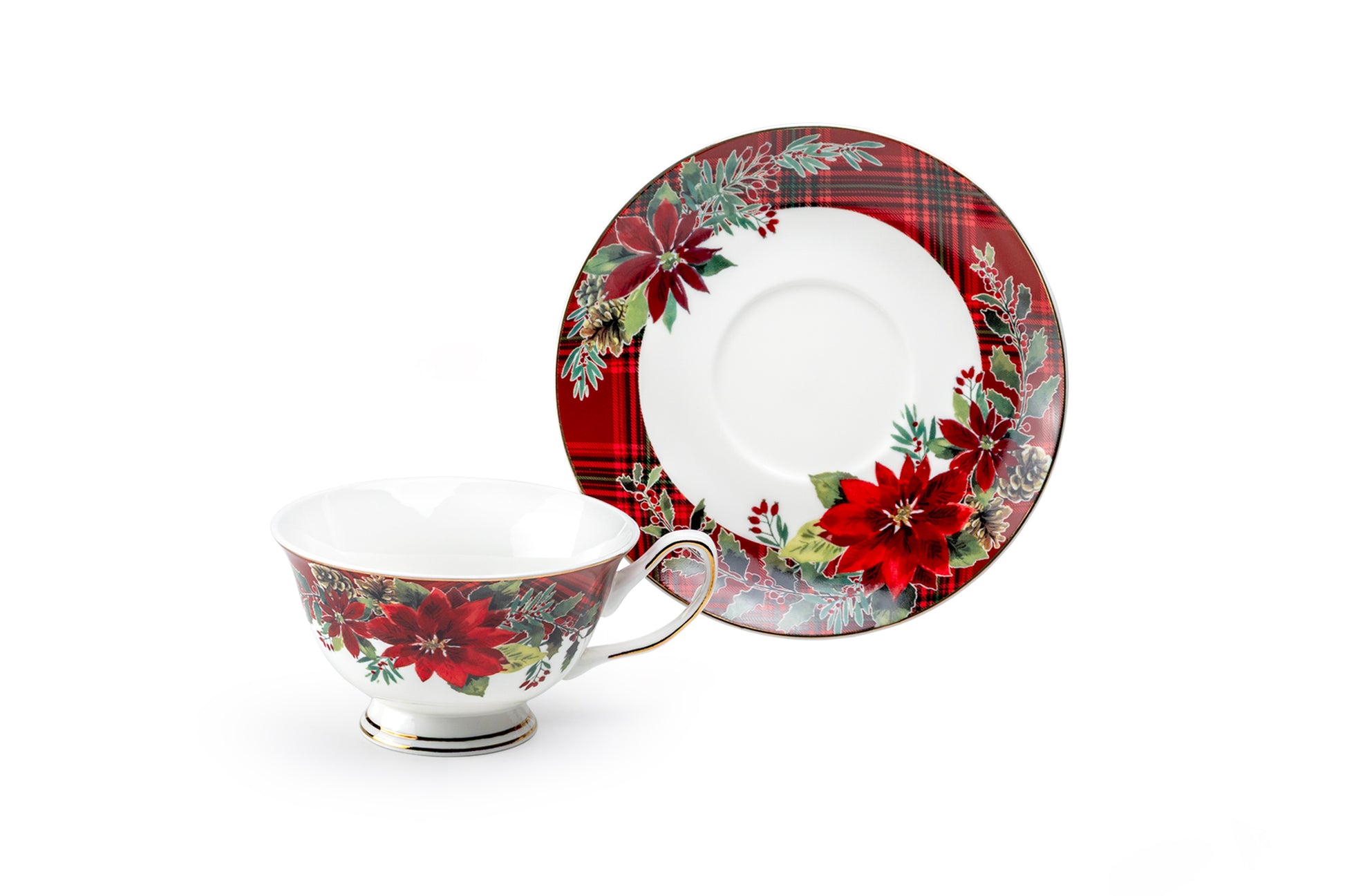 Poinsettia Pine Cone Fine Porcelain Tea Cup and Saucer