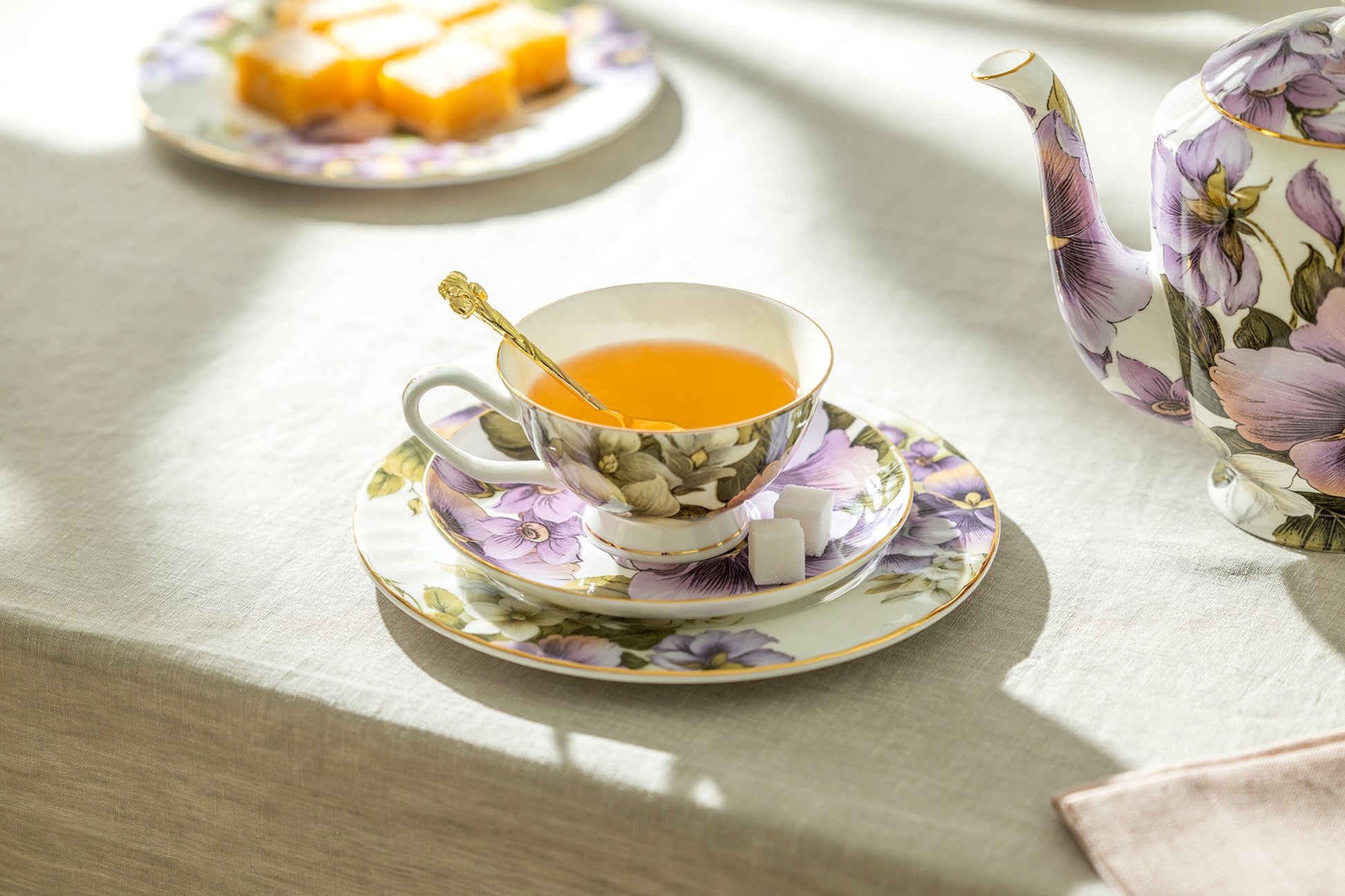 Purple Gold Pansy Bone China 9-Piece Tea Set
