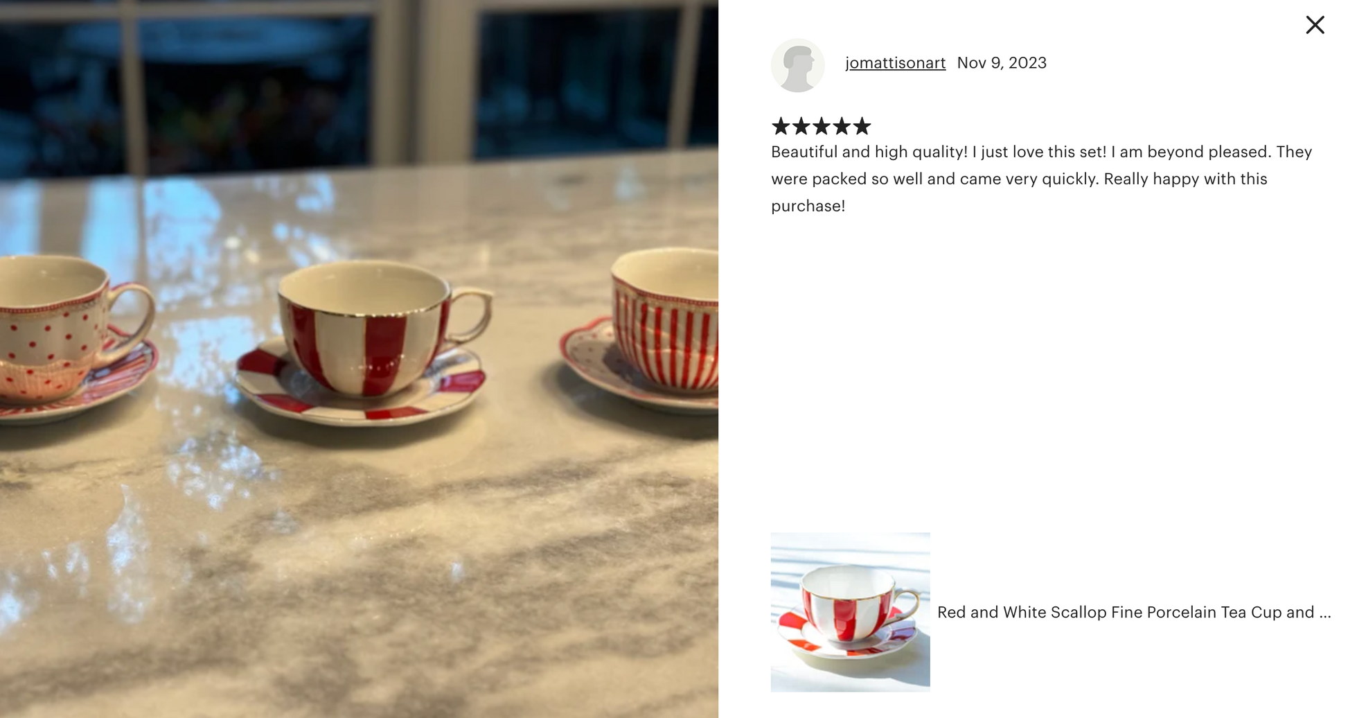 Each set includes - 1 cup with 1 saucer