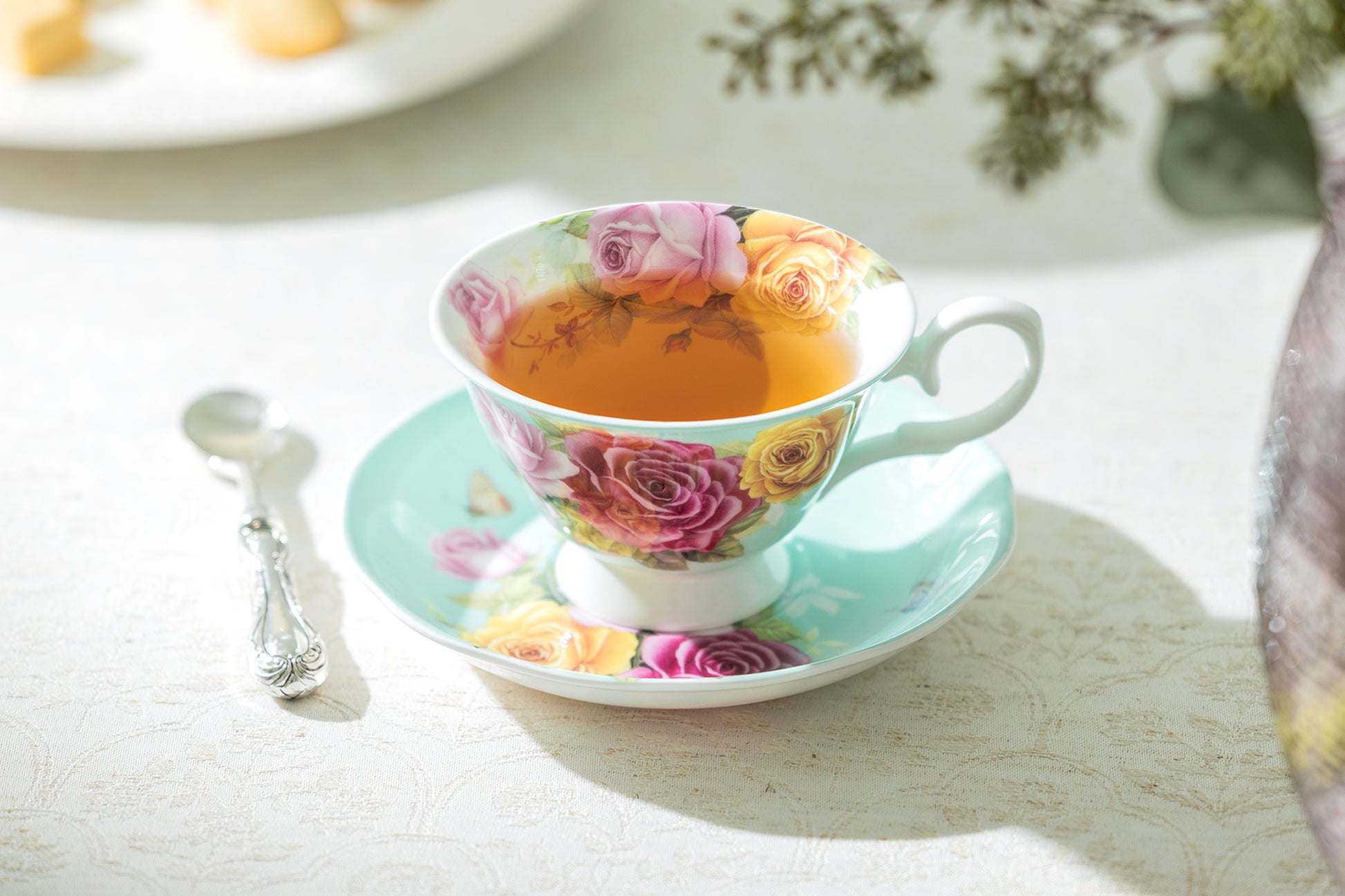 Rose Bouquet Mint Bone China Tea Cup and Saucer