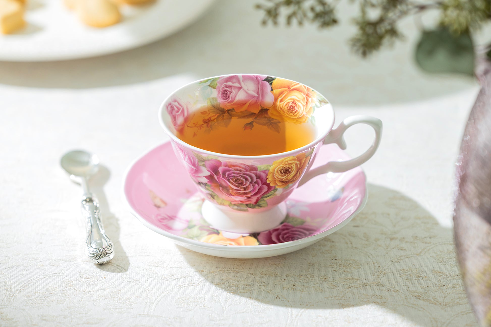 Rose Bouquet Pink Bone China Tea Cup and Saucer