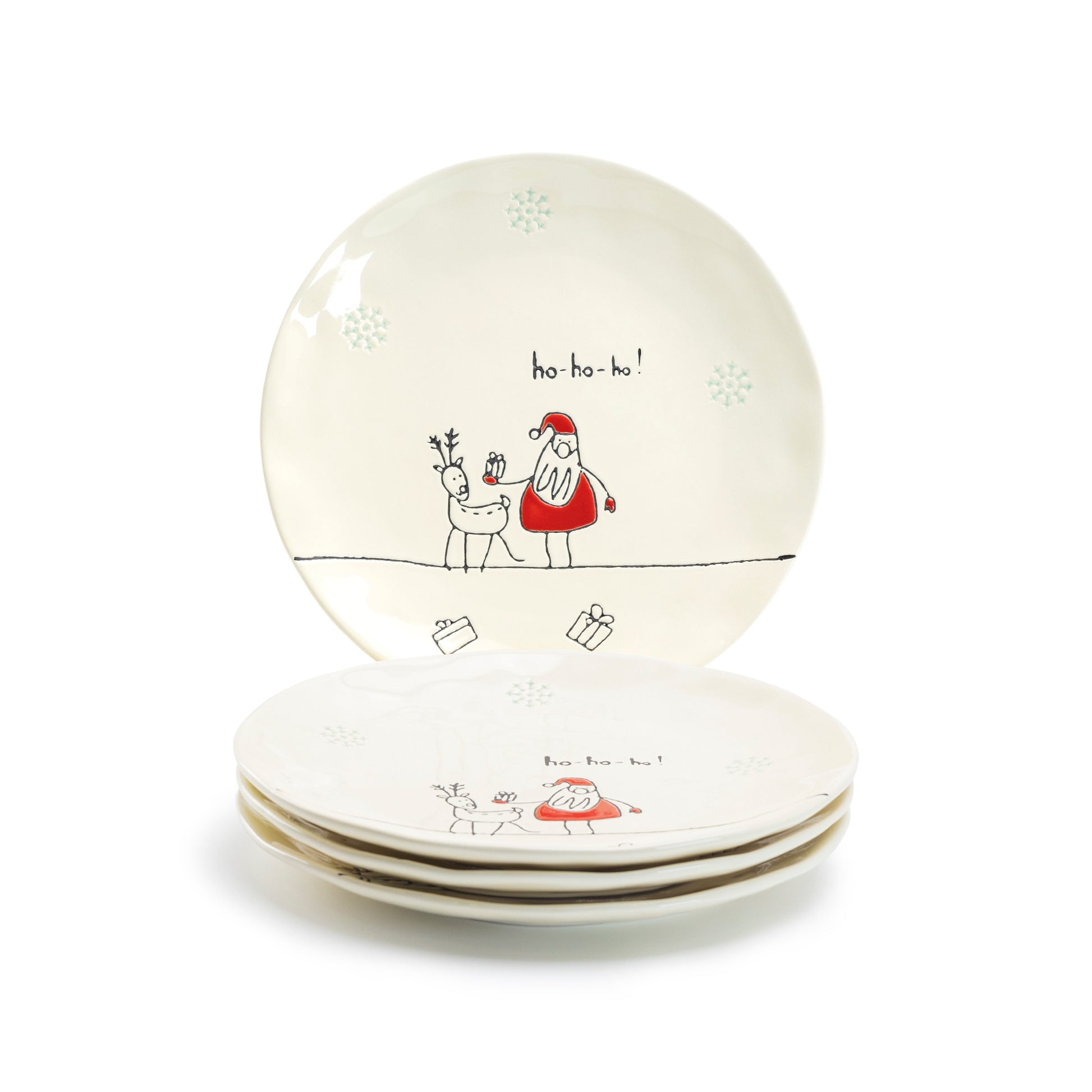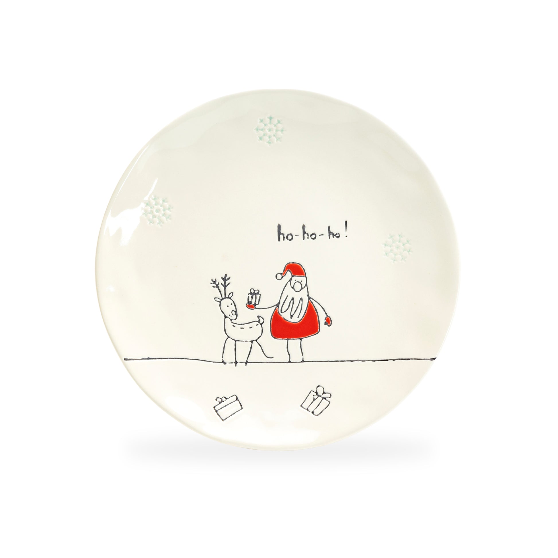 The Santa’s Reindeer Gift Plate features a playful engraved design of Santa and his reindeer exchanging gifts, bringing festive cheer to your table. The whimsical illustration is set against a soft cream background, accented by engraved snowflakes and cute gift details. Perfect for serving desserts, salads, or appetizers, this plate combines holiday fun with everyday functionality.