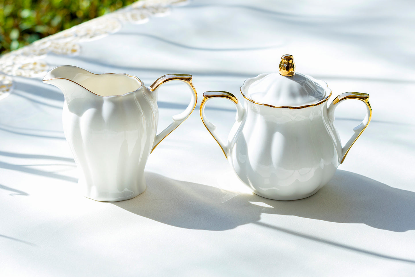 White Gold Lace Fine Porcelain Tea Set