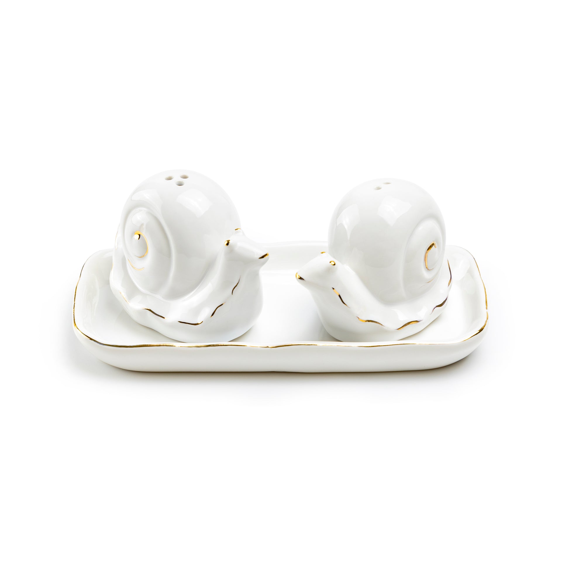 White Gold Snails Ceramic Salt and Pepper Shaker Set