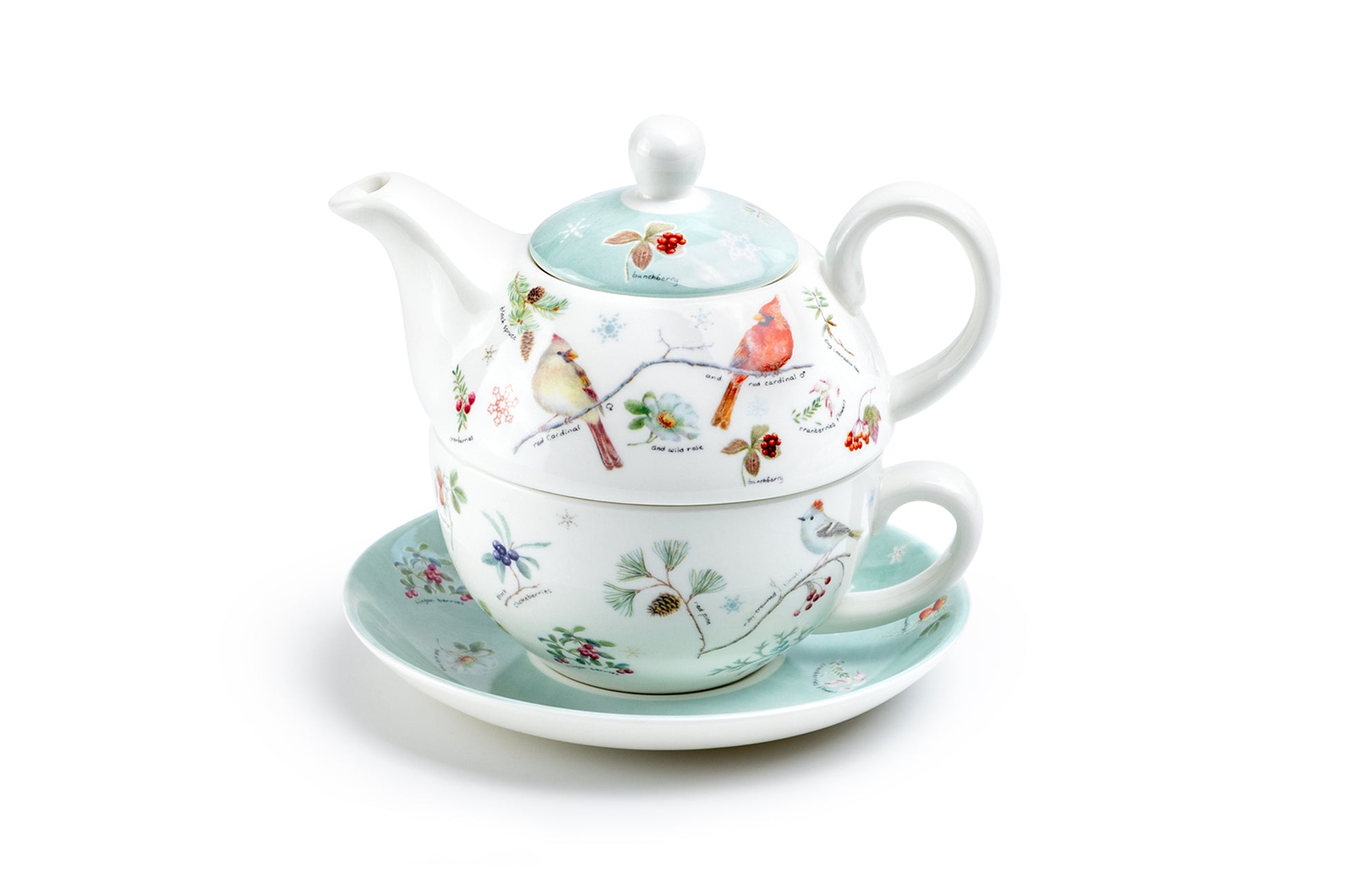 Winter Cardinals Fine Porcelain Tea For One Set